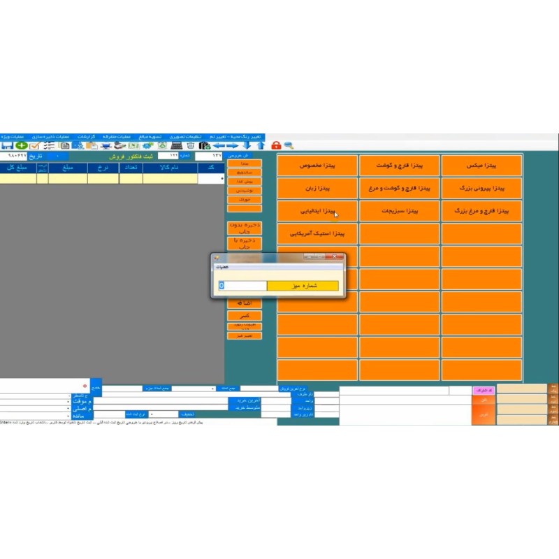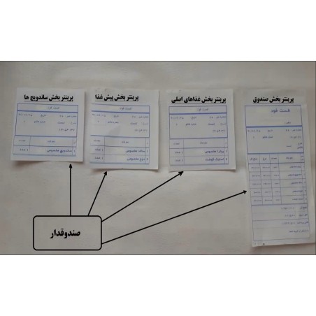 فروش با تاچ بهمراه شماره میز و چند نوع چاپ و گروه چاپی (بهمراه گزارشات و چاپ بیرون بر)
