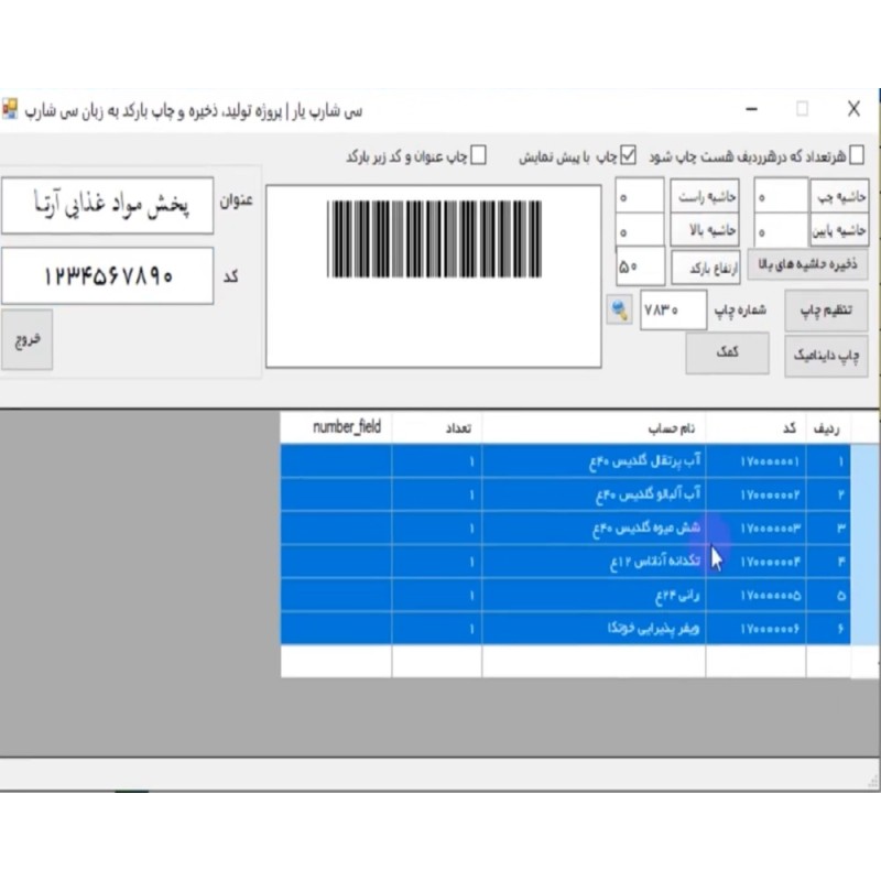 تنطیمات چاپ بارکد برای قفسه کالا