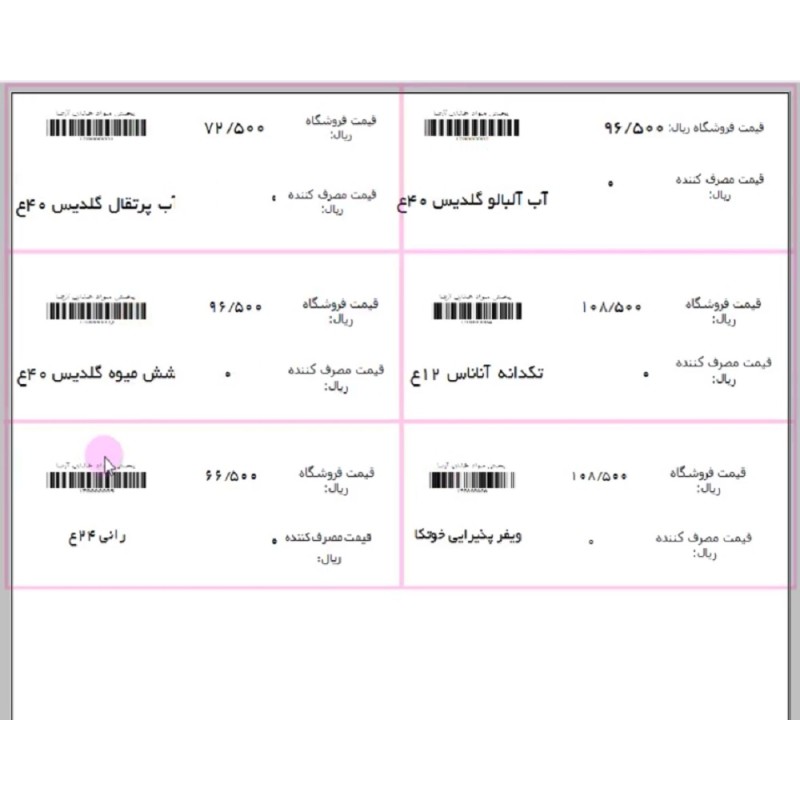 چاپ لیبل بارکد (دو نرخ برای قفسه کالا)