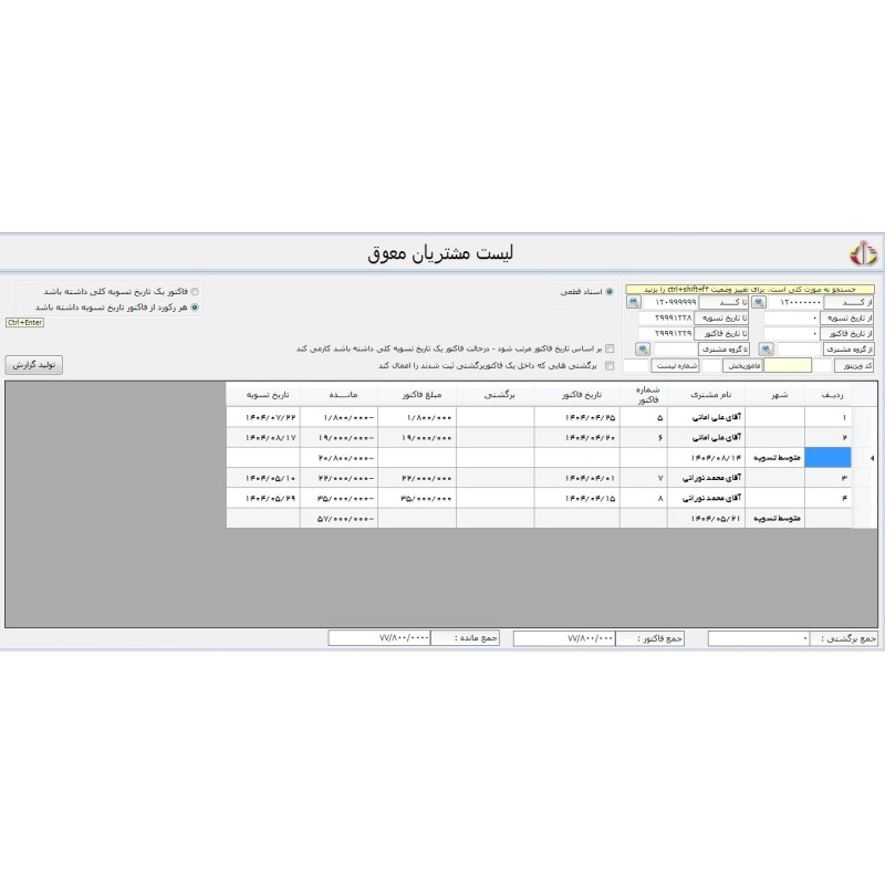 راس گیری فاکتور فروش در گزارش عملکرد حساب