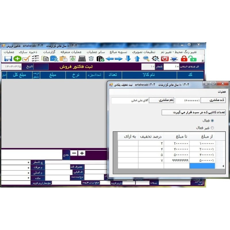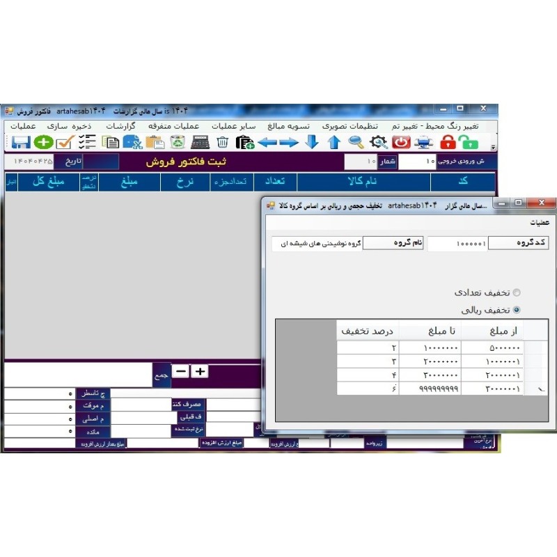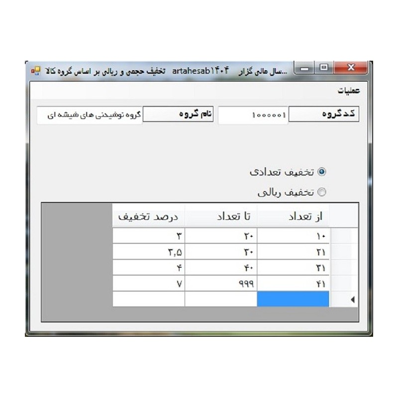تخفیفات تعدادی، ریالی(حجمی ، پلکانی ، درصدی سطری و گروهی و ...)