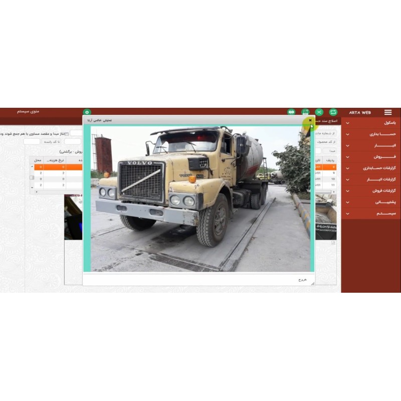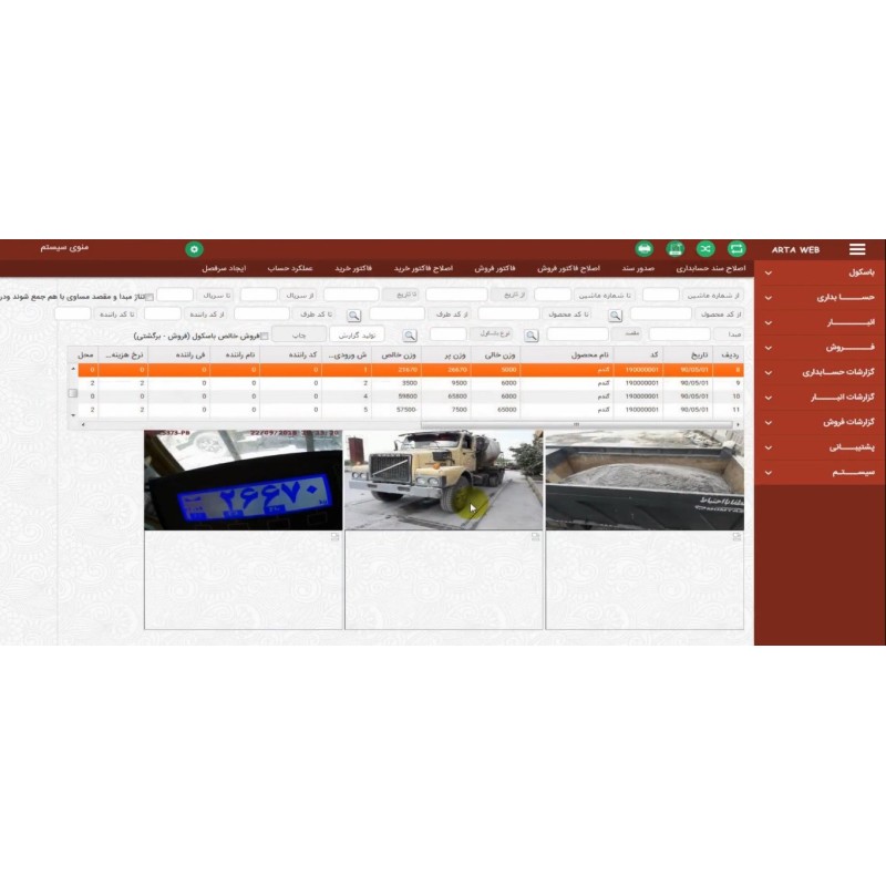 لحظه ذخیره قبض باسکول از چرخهای کامیون از نشاندهنده باسکول و از بار خودرو داخل کامیون عکس گرفته میشود. حدالامکان بار داخل کامیون مشخص باشد. گزارش نرم افزار تا سه تصویر نشان داده میشود. بیش از سه تصویر اختیاری میباشد.
