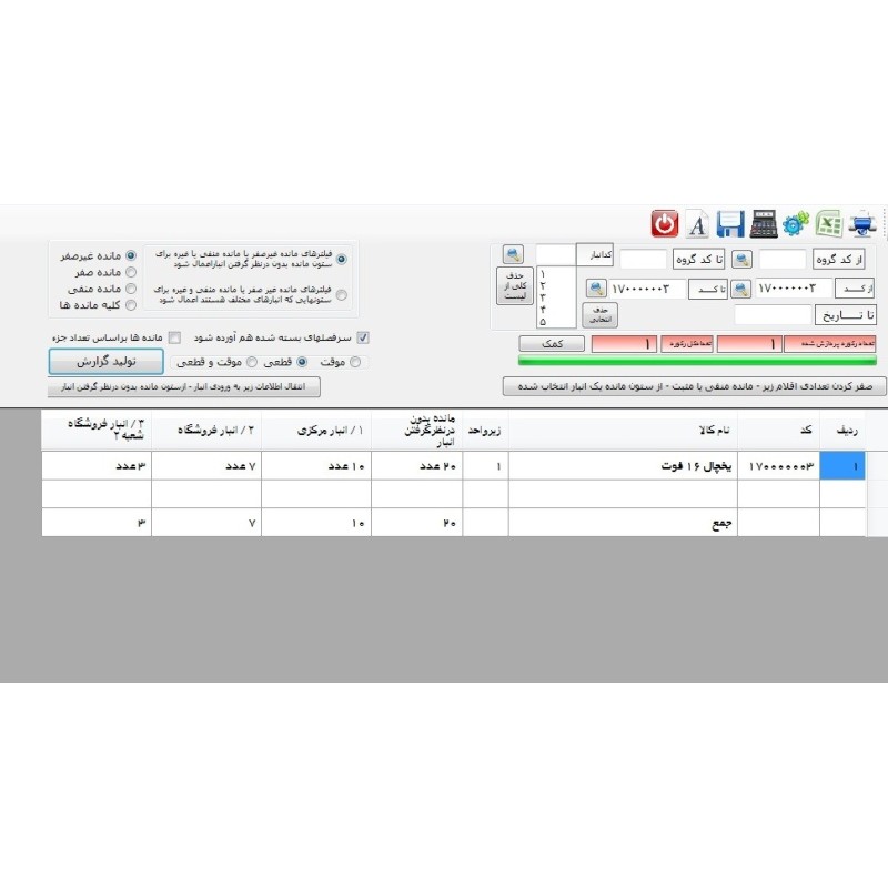 ۴. گزارش کاردکس کالا به تفکیک انبار قابل مشاهده است؟ بله، شما میتوانید گزارش گردش و موجودی کالا را هم بهصورت تجمیعی (کل شرکت) و هم بهصورت تفکیکی برای هر انبار یا انبارک خاص دریافت کنید.
